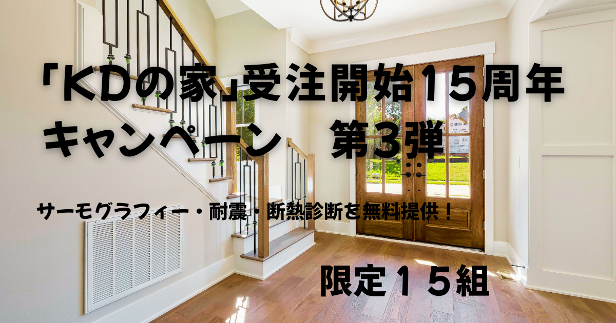 おかげさまで「KDの家」は15周年。 この節目に、代表のエンジニア精神を注ぎ込んだ【3大無料精密診断キャンペーン】を開催します。