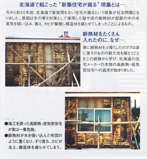 壁を剥がした瞬間、そこにあったのは、あるはずの断熱材が湿気で無残にずり落ち、「壁の中で消えていた」姿。 「こんな家を造っていては、お客様の一生を裏切ることになる。」 あの時の悔しさと、二度とこんな思いをさせてはいけないという情熱と、数値で証明できる本物の家を造らなければ」と誓ったあの日から、私たちの挑戦は始まりました。現在の高断熱・高耐震へのこだわり(FPの家・KDの家)の原点となりました。